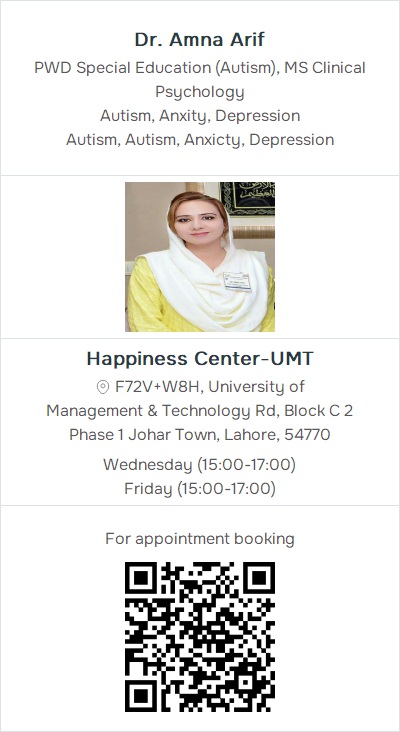 Autism, DepressionHappiness Center-UMT, University of Management & Technology Rd, Block C 2 Phase 1 Johar Town Lahore (1) Contact: 03062999849, 03054998887, 03074111647