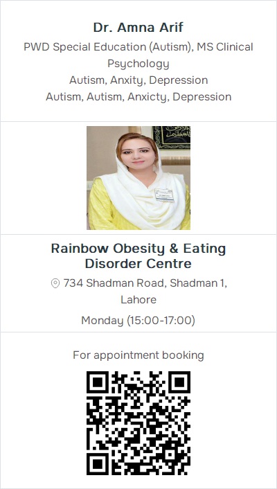 Autism, DepressionRainbow Obesity & Eating Disorder Centre, 734 Shadman Road, Shadman 1, Lahore (1) Contact: 03062999849, 03054998887, 03074111647