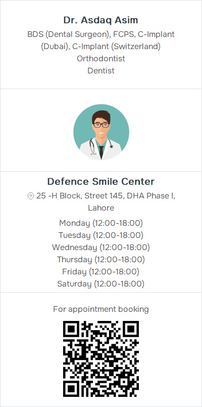 DentistDefence Smile Center, 25 -H Block, Street 145, DHA Phase I, Lahore (1) Contact: 03062999849, 03054998887, 03074111647
