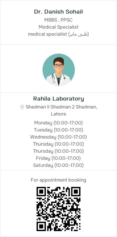 medical specialist (طبی ماہر)Rahila Laboratory, Shadman II Shadman 2 Shadman, Lahore (1) Contact: 03062999849, 03054998887, 03074111647