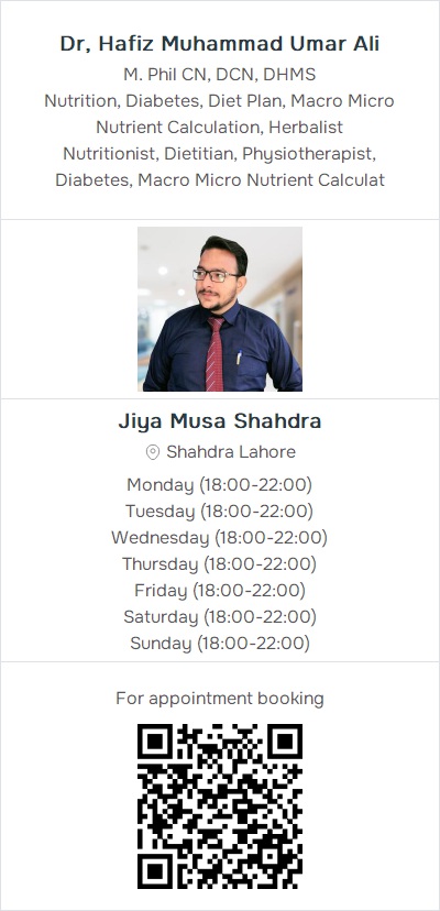 Nutritionist ماہر غذائیت, Dietitian, Physiotherapist فزیوتھراپسٹ, Diabetes, Macro Micro Nutrient CalculatJiya Musa Shahdra, Shahdra Lahore (1) Contact: 03062999849, 03054998887, 03074111647