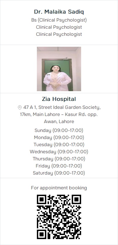 Clinical Psychologist, Behavior Therapy, Special Educational Therapy, Counseling, Assessment and Evaluation, Therapist, Individual TherapyZia Hospital, 47 A 1, Street Ideal Garden Society, 17km, Main Lahore – Kasur Rd، opp. Awan, Lahore (G7) Contact: 03062999849, 03054998887, 03074111647