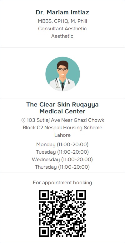 AestheticThe Clear Skin Ruqayya Medical Center, 103 Sutlej Ave Near Ghazi Chowk Block C2 Nespak Housing Scheme Lahore (1) Contact: 03062999849, 03054998887, 03074111647