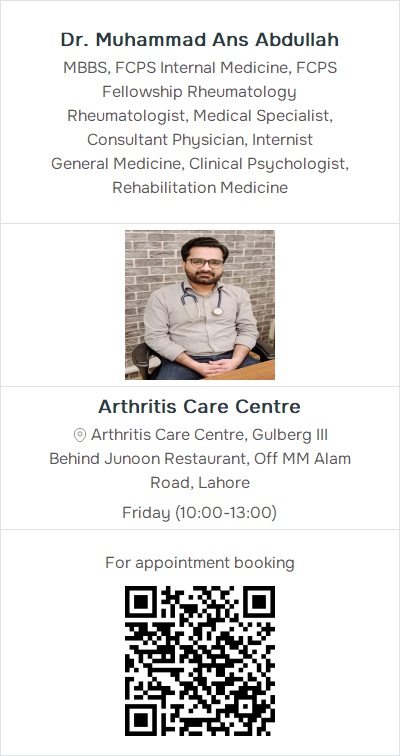 General Medicine, Clinical Psychologist, Rehabilitation MedicineArthritis Care Centre, Arthritis Care Centre, Gulberg III Behind Junoon Restaurant, Off MM Alam Road, Lahore (1) Contact: 03062999849, 03054998887, 03074111647
