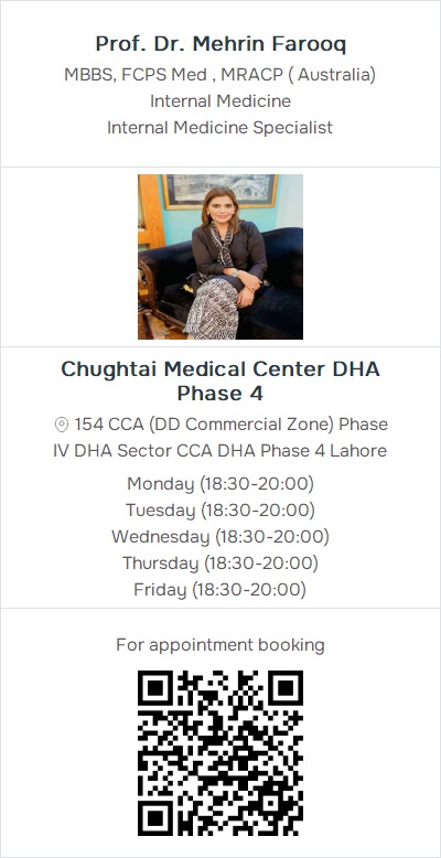 Internal Medicine SpecialistChughtai Medical Center DHA Phase 4, 154 CCA (DD Commercial Zone) Phase IV DHA Sector CCA DHA Phase 4 Lahore (1) Contact: 03062999849, 03054998887, 03074111647
